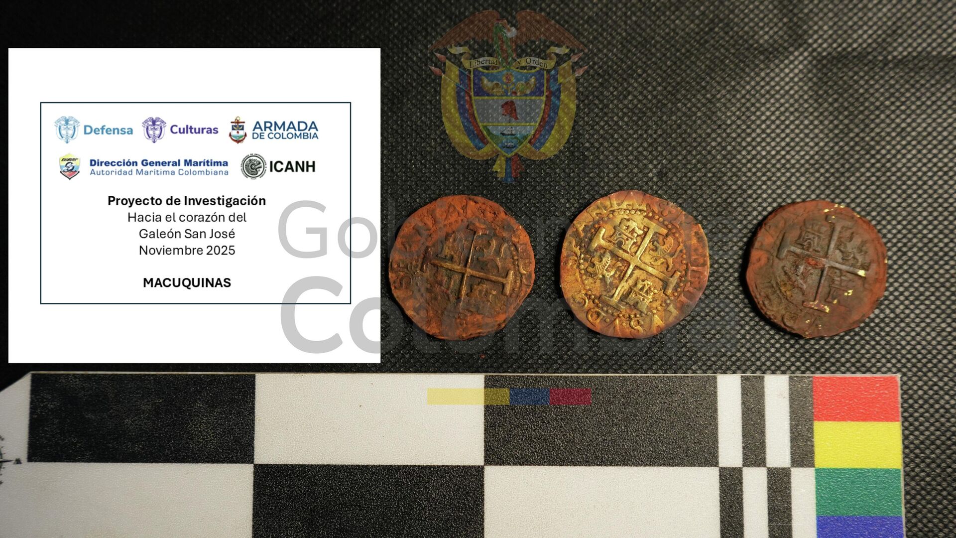Kartagena‘daki San Jose Kalyonu Korumalı Arkeolojik Alanı araştırma projesinin ikinci aşamasında Kolombiyalı araştırma ekibi, kurtarılan beş arkeolojik eserin altın ve bronz paralar (macuquina), bir porselen kupa ve bir top olduğunu duyurdu.